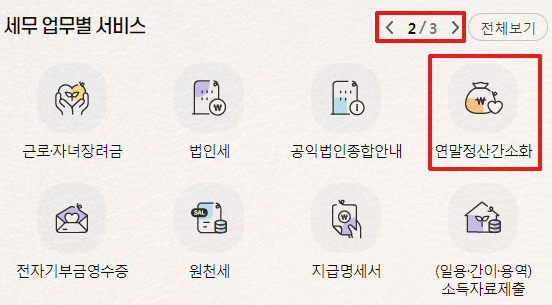 만약 보이시지 않는다면, 세무 업무별 서비스에 연말정산 간소화 메뉴가 있으니 여기서 클릭하여 방문할 수 있습니다.
